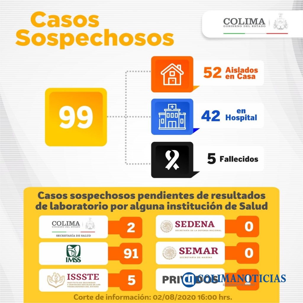 La Secretaría de Salud y Bienestar Social informó que las muertes ocurrieron en 5 mujeres y un hombre, con edades entre los 30 y más de 65 años; 3 eran residentes de Manzanillo, 2 de Colima y uno de Tecomán.