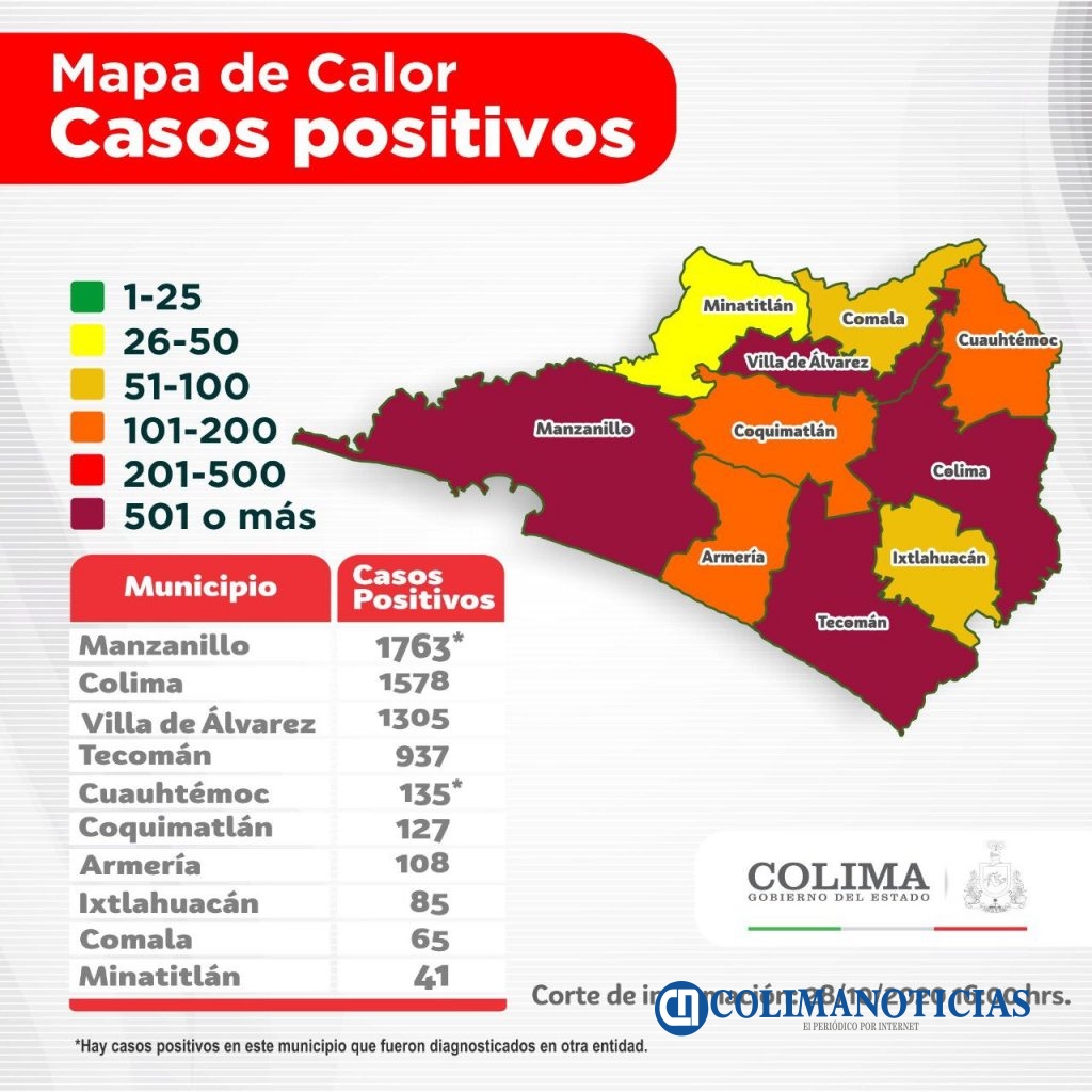 La Secretaría de Salud reporta que las 7 defunciones ocurrieron en 5 hombres y 2 mujeres, entre los 45 y más de 65 años; de los cuales, 3 eran de Villa de Álvarez, 2 de Tecomán, uno de Colima y uno de Cuauhtémoc.